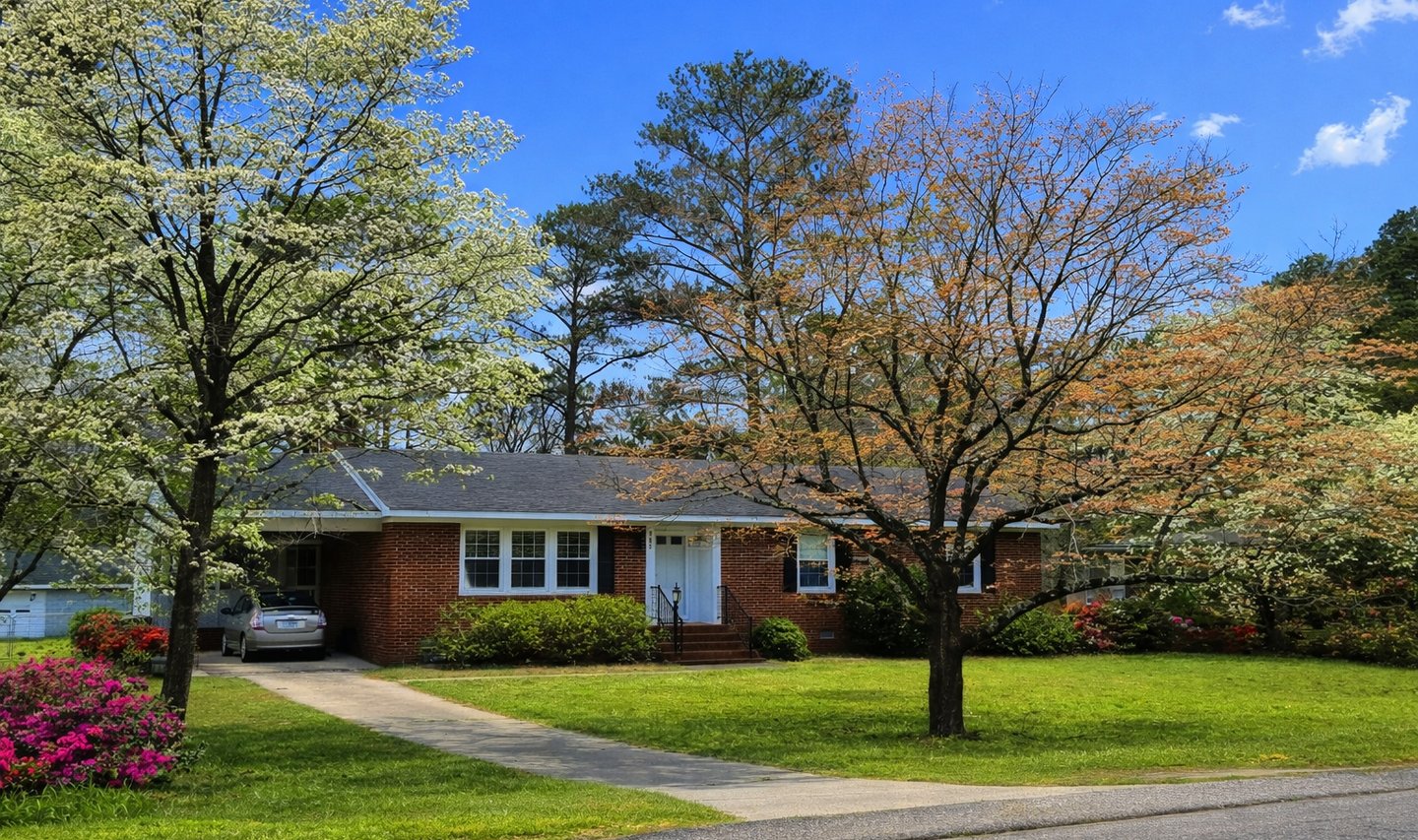 The yard is lovely. Mature landscaping with dogwoods, oak, long leaf pine, mimosa and two organic fig trees that produce more fruit each year. It also has gorgeous multi colored azaleas, hydrangea, gardenia, forsythia, jasmine, day lilies, & hibiscus.
