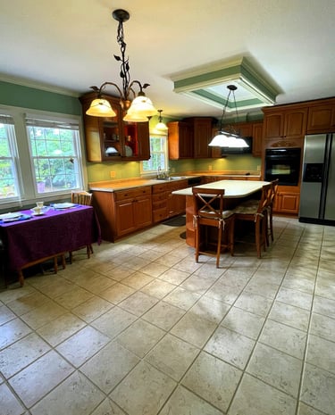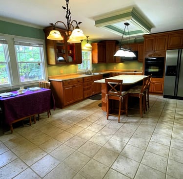 Spacious kitchen with center island, abundant cabinetry, and natural light.