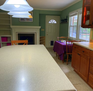 The beautifully updated kitchen features stainless-steel appliances, a large refrigerator/freezer, and a new stainless single-basin sink with under-cabinet lighting that brightens the workspace. A spacious island makes meal prep easy and creates a natural gathering spot. Cooking is a pleasure with a new convection oven (Oct 2025) for faster meals and a new glass cooktop (Dec 2025). Abundant cabinet space keeps everything organized. Just steps away, the dining area features a cozy fireplace, creating a warm and inviting space for meals, conversation, and entertaining.